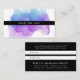 Encoraje seus clientes e clientes a compartilhar o amor com esses cartões de visitas de referência de aquarela. Frente apresenta uma linha de solteiro de texto personalizado em branco em uma faixa preta, em um pano de fundo de tinta com aquarela em tons brilhantes de violeta roxo e indigo azul. Adicione as informações de contato e os termos de referência ao verso usando os campos modelo fornecidos. Inclui espaço para os nomes do remetente e do novo cliente.