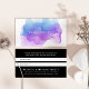 Encoraje seus clientes e clientes a compartilhar o amor com esses cartões de visitas de referência de aquarela. Frente apresenta uma linha de solteiro de texto personalizado em um pano de fundo com tinta de aquarela em tons de entalhe de azul indigo e roxo violeta. Adicione as informações de contato e os termos de referência ao verso usando os campos modelo fornecidos. Inclui espaço para os nomes do remetente e do novo cliente.