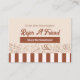 Espalhe o amor pela bondade assombrada com este charmoso cartão de referência de padaria Clássica Castanha Castanha Clássica Moderna! Apresentando um fundo castanho aconchegante acentuado por deliciosas ilustrações de rabiscos cozidos - como cupcakes, pão e pastos - esta carta incorpora a essência quente e convidativa da sua padaria. Concebido para recompensar clientes leais e seus amigos, este cartão de referência é personalizável com o nome da sua padaria, os detalhes de contato e as recompensas de consulta exclusiva. Seu design lúdico e artesanal é perfeito para encorajar recomendações de palavras enquanto reflete o coração e a criatividade de sua empresa. Ideal para padarias, compradas de pastelaria e empresas de sobremesa. Recompense seus clientes por compartilhar a doçura com um cartão de referência que é tão delicioso quanto seus produtos cozidos!