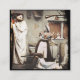Vintage image do início dos anos 1900. Marido e esposa na cozinha sendo abordados por uma figura alta e fantasma com uma cabeça de abóbora.