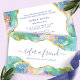 Este espantoso e moderno cartão de referência imita a beleza cativar de uma pedra de carvão. A design apresenta uma mistura de azuis, verdes e dourados vibrantes, criando um efeito elegante e atraente. Acentos ao longo de cima e de baixo adicionam um toque de luxo. Este cartão é perfeito para as empresas que procuram projetar uma imagem sofisticada e única, e é uma excelente escolha para um cabeleireiro, maquiador, spa ou profissional de salão.