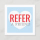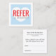 Fresh modern fully customizable referral card template for beauty related professionals. Trendy clean design with red/blue/white colors and heart icon.