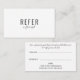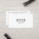 Este simples cartão de referência elegante é perfeito para uma ampla gama de profissões, incluindo; esteticistas, cabeleireiros, consultores de beleza, spas, artistas de maquiagem, salões de unhas para citar alguns! Você pode adicionar seu nome, detalhes de contato e a oferta de desconto para o cliente ou cliente no verso em tipografia moderna. Projetado por Thisisnotme©