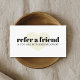 Modelo simples de cartão de referência totalmente personalizável para salões, compra. Design mínimo elegante com fundo branco limpo, ícone de coração pastel leve, textos em negrito.