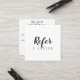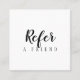 Um simples script elegante preto e branco refere um cartão de amigo. Personalize com seus detalhes de contato e oferta especial no sentido inverso. Projetado por Thisnotme©