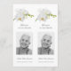 Dois marcadores de recordação são impressos em um cartão de 5" x 7" que você precisará cortar em meio- marcadores serão de 2,5" x 7" quando cortado. Uma elegante orquídea branca, e uma foto na frente e a oração do Senhor, ou qualquer oração, são impressas no verso. Bonita para se dar em um funeral, serviço de memórias, celebração da vida, aniversário da morte ou em notas de agradecimento. CORRESPONDENTE a itens na nossa coleção.