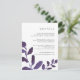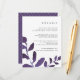 Projetado para coordenar com a nossa coleção de núpcias botânicas em Violet, este chic plum e este cartão de informação de hóspedes brancos apresentam imagens de uma vibrante folhagem púrpura de aquarela, enquadrando seus principais detalhes de casamento, como acomodações de hotéis, informações de recepção de boas-vindas, site e muito mais. Adicione seu texto personalizado usando os campos fornecidos e use a função Personalizar para ajustar fontes, tamanhos e espaçamento.