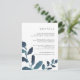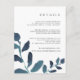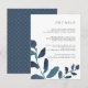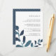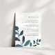 Projetado para coordenar com a nossa coleção de casamento Botânico Pressionado em Ultramarine, este cartão de informação de convidado branco e azul-chic apresenta imagens de uma vibrante folhagem de cor escura de lacre, enquadrando seus principais detalhes de casamento, como acomodações de hotel, informações de recepção de boas-vindas, site e muito mais. Adicione seu texto personalizado usando os campos fornecidos e use a função Personalizar para ajustar fontes, tamanhos e espaçamento.