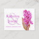 O cartão de recepção de orquídeas de flor silvestre é parte de um jogo de casamento correspondente. Ideal para usar como cartão de informação de casamento após a cerimônia, ou como cartão de instruções para mantê-lo informado sobre o dia e a festa à frente, também pode ser usado um cartão de registro de presente, um cartão de alojamento, ou até um cartão de poço de desejo, ou um cartão de site de casamento mudando o texto personalizável na frente e no verso.