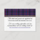Cartão de informação de xadrez de tartan do casamento escocês na moda, feito em branco com uma faixa do clã azul de regência Dundonald tartan e uma banda de ouro corre ao longo do topo, do cartão, com a xadrez cobrindo o dorso. Personalize todo o texto para ler o que você quer. Os produtos de casamento correspondentes estão disponíveis.