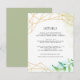 Projetado para coordenar com a nossa coleção de casamento Terrarium, este novo cartão de informação botânica verde apresenta uma fronteira geométrica ouro acentuada por uma cor aquosa esmagadora verde. Personalize com seus principais detalhes de casamento, como acomodações de hotel, informações de recepção de boas-vindas, site e muito mais. Adicione seu texto personalizado usando os campos fornecidos e use a função Personalizar para ajustar fontes, tamanhos e espaçamento.