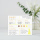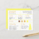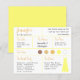 Um cartão de informação de dama de honra amarelo manteiga, incluindo informações sobre a data e local do casamento, as cores do casamento, o grupo da noiva, o vestido da dama de honra e uma mensagem de proposta de dama de honra. No canto superior esquerdo, o nome da dama de honra está escrito em uma fonte manuscrita laranja. No canto inferior direito, há um vestido amarelo manteiga - um tom moderno de amarelo. No centro, estão as cores do casamento em círculos. As cores, incluindo a cor do vestido de noiva, podem ser alteradas.