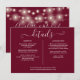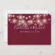 Um cartão de informação de detalhes de casamento burgundy elegante com lindas luzes de corda. Personalize com os detalhes do seu evento especial em tipografia elegante com seus nomes e data de casamento no verso. Desenhado por Thisisnotme©