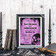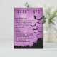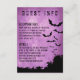 Cartão de Informação de Halloween com morcegos sobre fundo roxo e um quadro inferior preto grunge. Você pode alterar as fontes e todo o texto. Você pode mover, reduzir o tamanho ou excluir os morcegos e o quadro preto inferior.