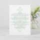 Simples com elegância chique descreve este sofisticado Cartão de Informação de Casamento Subtil Damasco com um fundo sutil em damasco verde menta. Este cartão de informações moderno é perfeito para um casamento tradicional e pode ser facilmente personalizado com os detalhes do seu casamento. Para mais opções de personalização, clique no botão Personalizar.