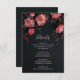 Pink 3D wild roses and black background enclosure card. With a headline in an elegant handwritten script.