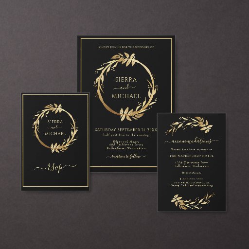 Cartão De Informações Alojamentos de Casamento Dourado e Preto Chic Eleg