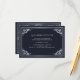 Coloque a palco para um evento elegante com este cartão de alojamento de casamento. Este design de inspiração tarot apresenta um quadro Art Nouveau em prata contra um fundo azul marinho — perfeito para um cheio de história de amor de magia. Observe que a prata nestas placas NÃO é uma folha real e é impressa em cores planas.