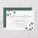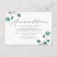 Cartões de abrigo de hotéis de casamento Elegante, eucalipto, que contêm eucalipto verde e folhagem pintados à mão nos cantos. Personalize os cartões de alojamento do hotel de casamento adicionando informações do hotel, código do grupo de descontos, seu site, etc. Projetado para coordenar com a nossa coleção de casamentos do Modern Watercolor Eucalyptus Greenery.