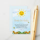 Uma bela ilustração do Sol e do jardim com flores e borboletas e um belo céu azul são os elementos que fazem deste um cartão de chá de fraldas bonitinho neutro em termos de gênero. Parte de uma coleção.