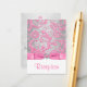 Esta elegante placa de cor damasco brilhante FAUX, cor-de-rosa-gelo, floral de cinza prateada FAUX, tem um fundo de vários flocos de neve brancos e uma fita e arco cor-de-rosa IMPRESSOS com uma estrela cinza prateada de David brooch que corresponde ao convite Bat Mitzvah mostrado abaixo. Você também pode personalizá-lo para ser um cartão de informações ou instruções, alterando o texto de acordo. Entre em contato com niteowlstudio@gmail.com se precisar de alterações.