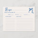 Celebre as próximas núpcias da sua noiva favorita com estilo com nossos cartões de receita de chá de panela de noiva caprichosos e extravagantes! Este cartão apresenta um lindo laço azul desenhado à mão em um estilo divertido e alegre e um verso listrado com listras verticais azul suaves. A fonte casual e manuscrita captura perfeitamente a emoção e a alegria da ocasião.