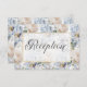 Cartão De Informações Azul e Branco Rústico Floral Moldura Dourada Branc