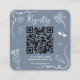 This Beach Doodle Bridal Shower QR Code Registry Enclosure Card features a dusty blue background decorated with whimsical white coastal doodles—waves, seashells, starfish, sunglasses, sparkles, and playful beach scribbles—framing your customized QR code in a clean and modern layout. The title “registry” appears below the code in crisp white lettering, accompanied by editable instructions that guide guests to easily view the bride’s gift registry. Perfect for coastal, nautical, or beach-themed celebrations, this small enclosure card adds both charm and convenience to your bridal shower suite, with fully editable text and colors.