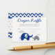 Bilhetes de fralda de elefante giros em azul e cinza de marinho moderno. A design de na moda apresenta um doce par de elefantes mães e bebês, padrão de chevron e bolinhas.