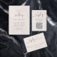 Este simples detalhe o cartão de cerimônia com detalhes do casamento com cronograma de código QR e site de modelo de código QR rsvp, nosso roteiro de caligrafia no site do casamento, uma elegante linha do tempo da tipografia moderna, linha do tempo do casamento, blush romântico com flores florais, folhas de folhas de rosa botânicas, um mínimo minimalista de informações, janto de dança de cerimônia, beberros de torradas