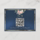 Blush Floral, QR Code - Blue Enclosure Card features a blush pink floral bouquet on a blue background framed with ribbon, details for more information on the front and QR code on the back. Designed to coordinate with the "Floral & Foil Botanical Wreath" Wedding Collection. To change details, click «Personalize». To move the text or change the text size, font, or color click «Click to customize further»