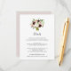 Projetado para coordenar com a nossa coleção de casamento Blush Romance, este elegante cartão de informação floral de hóspedes apresenta um buquê de burgundy marsala, flores cor-de-rosa e marfim, no topo dos seus principais detalhes de casamento, como alojamentos de hotel, informações de recepção de boas-vindas, site e muito mais. Adicione seu texto personalizado usando os campos fornecidos e use a função Personalizar para ajustar fontes, tamanhos e espaçamento.