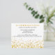 Este cartão de acomodação de casamento com purpurina dourada falsa apresenta uma caligrafia encantadora em fundo branco. O design dá-lhe uma aparência de purpurina dourada polvilhada. Todo o texto neste design é totalmente personalizável. Você pode editar cada texto de acordo com a sua necessidade. A parte traseira fica vazia para que seu convidado possa fazer anotações ou você possa escrever algo especial à mão.