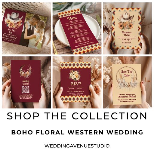 Cartão De Informações Boho Floral Western Wedding CÓDIGO QR