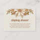 Esses cartões de chá de exibição de chá de panela de tendência apresentam flores retrorreflectoras e folhas em cores neutras de vintage como marrom, bege, ouro, verde-oliva e creme de marfim com texto retrô. Os cartões avisam aos hóspedes que não têm de embrulhar os seus presentes, mas sim de trazer os seus presentes não embrulhados com uma etiqueta de presente para poupar tempo para mais visitas e diversão!