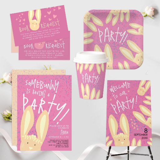 Celebre um dia especial com este adorável cartão de festas de primeiro aniversario com a mensagem de solicitação de livro. Apresentando um doce coelho amarelo-claro em um fundo cor-de-rosa macio pastel, este charmoso design é perfeito para as celebrações de aniversário de meninas. O layout moderno e limpo inclui texto personalizável, permitindo que você o personalize com seu próprio texto para chás de fraldas, solicitações de livros ou convites de festas. Ideal para os pais que querem construir a primeira biblioteca de um bebê enquanto celebram o seu aniversário principal. Essa carta fofa e editável é fácil de personalizar e impressão, fazer-a de uma inclusão atenciosa e na moda para qualquer partido.