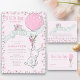 Adivinhem Quantos jogos de chá de fraldas você pode personalizar para o que quiser que os convidados adivinhem, como, por exemplo, Quantos coelhos de chocolate estão no vidro. O design apresenta um coelho bonito segurando um balão rosa e buquê de flores. Tipografia e ilustração caprichosa - perfeita para chá de fraldas de coelhinho, chá de fraldas de menina, páscoa de verão primavera ou tema feminino.