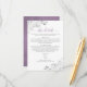 Esta bela placa de gabinete foi projetada para fornecer aos seus convidados informações adicionais sobre recepção, acomodações, arranjos de viagem, registro, site, instruções ou quaisquer outras especificações que os seus convidados possam exigir. Possui um design simples, mas elegante, com lavanda ou roxo claro e texto de cinza sobre fundo branco, um título de script antigo, e caramujos e espirros de folhas prateadas friamente nos cantos.