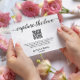 Apresentando nosso "Cartão de compartilhamento de fotos personalizado de casamento com código QR" - uma forma personalizada e conveniente de encorajar os convidados a compartilhar suas fotos do seu dia especial. Este cartão apresenta um código QR personalizado que os convidados podem analisar para aceder facilmente à sua plataforma de partilha de fotografias de casamento. Personalize todos os detalhes para tornar este cartão exclusivamente seu. Design simples, preto e branco que você pode personalizar com uma mensagem junto ao código QR. O código de QR personalizado torna simples para os hóspedes compartilhar suas fotos, garantindo que você captura cada momento precioso de sua celebração. Perfeito para aprimorar sua experiência de casamento e capturar memórias, este cartão de compartilhamento de fotos combina o estilo com funcionalidade. Faça uma declaração com este cartão projetado de forma exclusiva que adiciona um toque de conveniência aos seus esforços de compartilhamento de fotos de casamento.