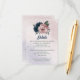 Cartão único de cerimônia com detalhes de casamento, com flores rosa romântica e marinhos e folhas verdes. PARA MAIS PRODUTOS CORRESPONDENTES, clique na coleção acima ou entre em contato comigo.
