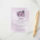 Cartão único de cerimônia de casamento com flores roxas e folhas verdes românticas empoeiradas. PARA MAIS PRODUTOS CORRESPONDENTES, clique na coleção acima ou entre em contato comigo.
