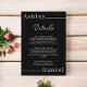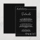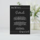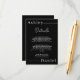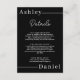 Este elegante cartão de detalhes de casamento preto e branco é perfeito para um casamento moderno. o simples design apresenta uma caligrafia branca elegante em um fundo preto.