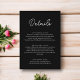 Este elegante cartão de detalhes de casamento preto e branco é perfeito para um casamento moderno. o simples design apresenta uma caligrafia branca elegante em um fundo preto.