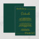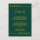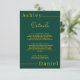Esta elegante carta de detalhes de casamento verde e dourado é perfeita para um casamento moderno. a simples design apresenta uma elegante caligrafia de ouro em um fundo verde.
