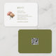 Chic com elegância moderna. Este cartão RSVP de casamento com código QR no verso, apresenta uma ilustração de rosa floral contemporânea e um conjunto de fontes modernas contra um fundo branco nítido na frente e verde-oliva no verso. Faz parte de uma suíte de rosa floral maior que inclui o papel de carta de casamento.