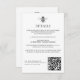 Um cartão simples para detalhes importantes com espaço para um Código QR levar seus hóspedes ao seu site, para o rsvp ou para dar a eles mais opções de hotel. Temos todo o prazer em personalizar ainda mais esta questão, por favor, sinta-se à vontade para nos enviar uma mensagem de assistência.