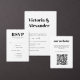 Cartão De Informações Casamento de código QR de RSVP Preto e Branco Clás