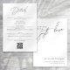 Cartão De Informações Casamento de Código QR de Script Branco e Preto Mo