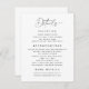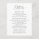 Capture a essência da elegância moderna com nossa carta minimalista de detalhes do casamento. Projetada com sofisticação e simplicidade, esta placa apresenta um esquema de cores eterno preto e branco e caligrafia e fontes modernas. Perfeito para transmitir suas informações de recepção e acomodação com estilo, e direcionar hóspedes para seu site de casamento para mais detalhes.