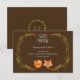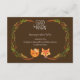 Esta encantadora coleção de convites para o casamento apresenta um casal bem vestido de gato e raposa rodeado por uma terra de folhas desenhadas à mão num arranjo de coroa rústica.